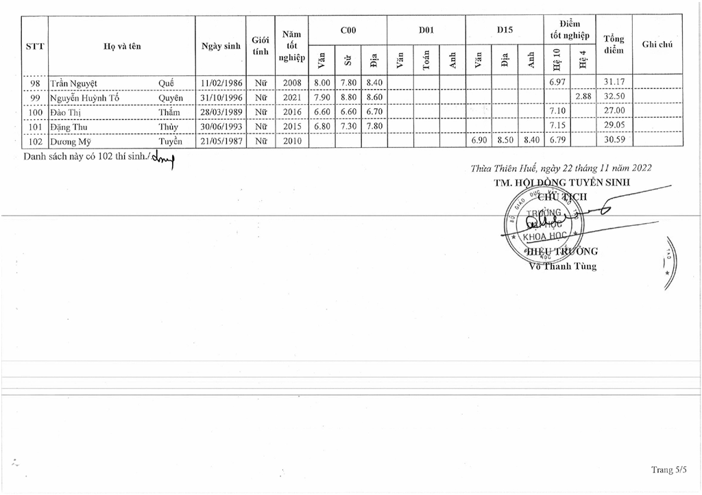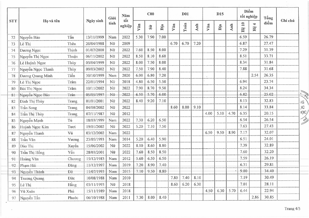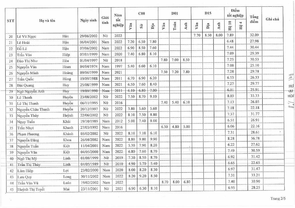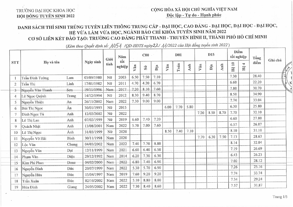 Danh sách thí sinh trúng tuyển liên thông trung cấp - đại học, cao đẳng - đại học, đại học - đại học hệ vừa làm vừa học ngành Báo chí khoá tuyển sinh năm 2022