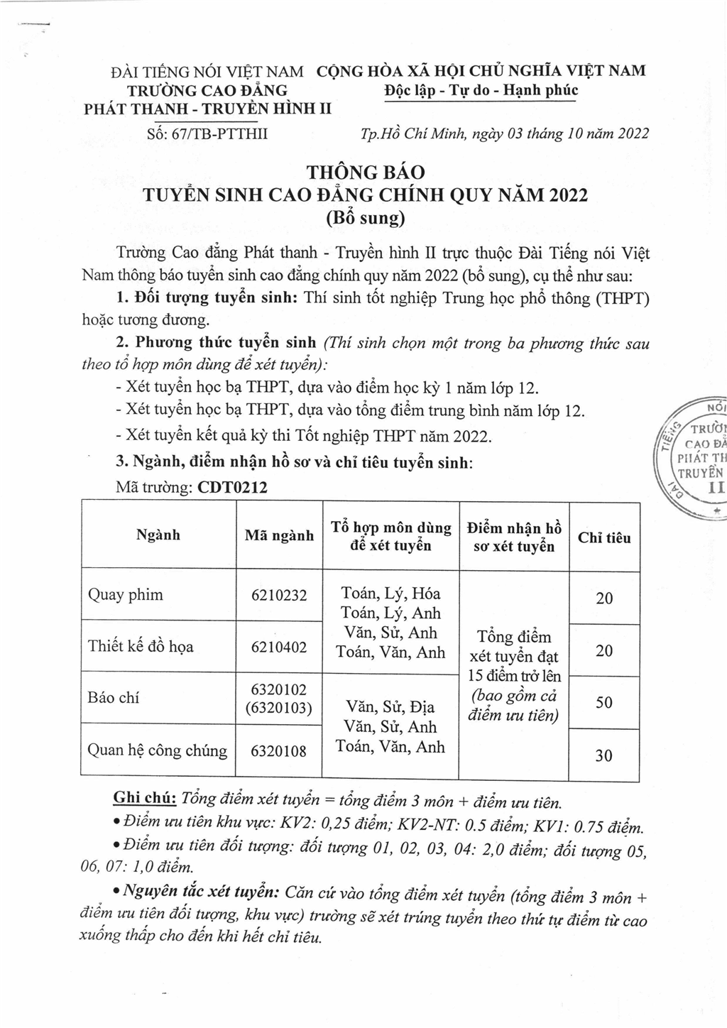- 07.01.2026THÔNG TIN TUYỂN SINH 2026 CỦA TRƯỜNG CĐ PHÁT THANH - TRUYỀN HÌNH II (VOV COLLEGE)