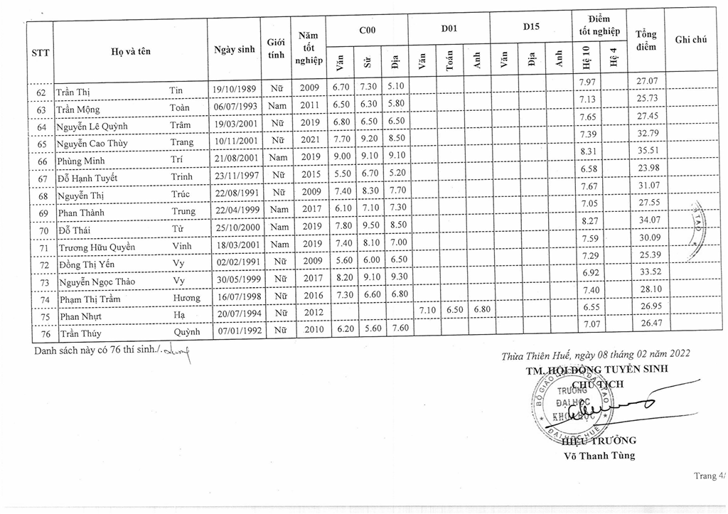 Danh sách trúng tuyển liên thông đại học ngành Báo chí khóa 2021