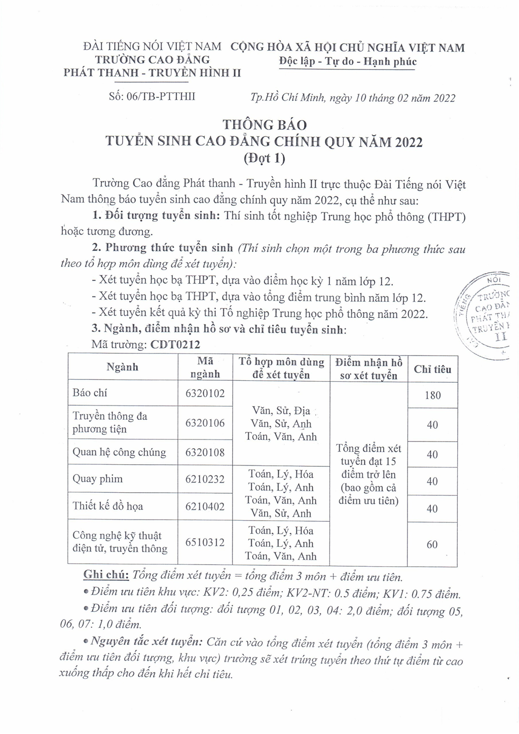 - 07.01.2026THÔNG TIN TUYỂN SINH 2026 CỦA TRƯỜNG CĐ PHÁT THANH - TRUYỀN HÌNH II (VOV COLLEGE)