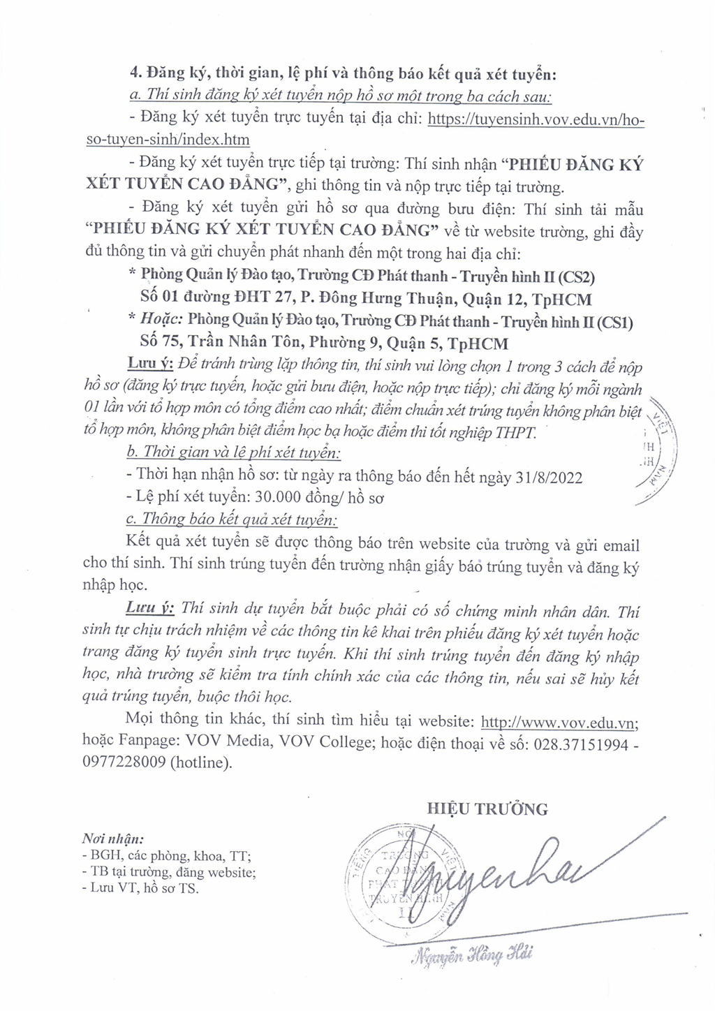 - ĐĂNG KÝ XÉT TUYỂN TRỰC TUYẾN TẠI ĐÂY: Thông tin tuyển sinh | tuyensinh.vov.edu.vn