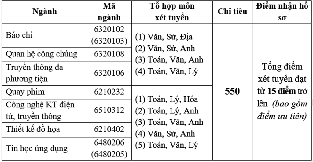 * Ghi chú: Tổng điểm xét tuyển = tổng điểm 3 môn + điểm ưu tiên.