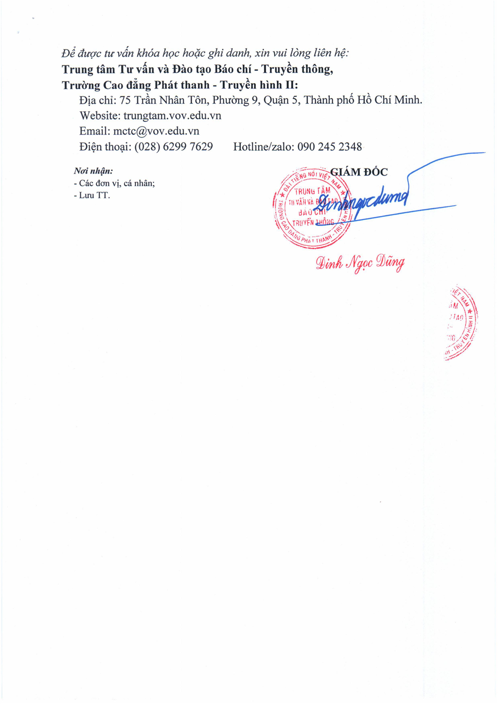 - Địa điểm đào tạo: Trường Cao đẳng Phát thanh - Truyền hình II (Số 75, Trần Nhân Tôn, Phường 9, Quận 5, TP Hồ Chí Minh).