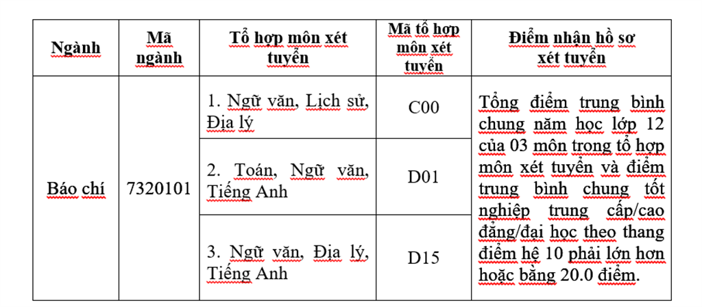Liên thông đại học 1. Ngành tuyển sinh: Báo chí